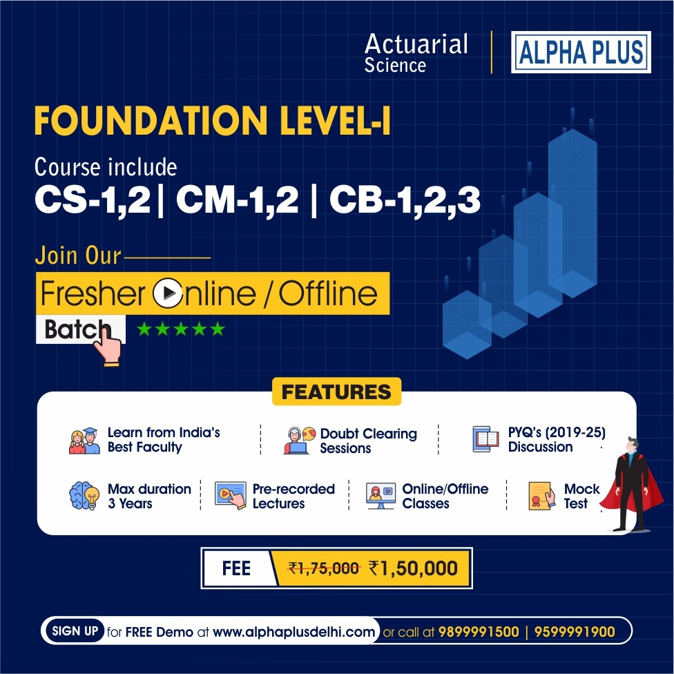 Foundation Level-I is Alpha Plus Institute’s flagship fresher program designed to help students build a strong base in Actuarial Science and systematically prepare for the Core Principles stage. This program covers the complete combination of: