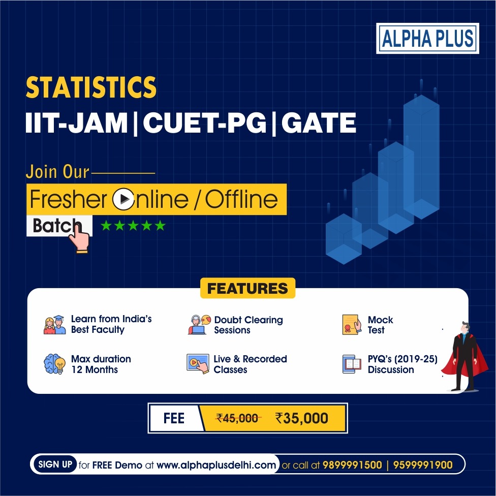 Alpha Plus Institute offers a structured and result-oriented Statistics coaching program designed for aspirants preparing for IIT JAM Mathematical Statistics, CUET-PG Statistics and GATE Statistics.
